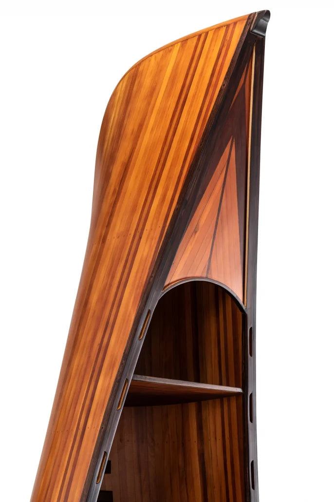 Dispatched for victuals for the captain’s table or canvas for a sail blown away in a storm, gigs were invaluable when in port or moored outside. Referred to as rowboats by land-bound folk, a gig was easy to lower overboard, needed minimum crew, and was quick to dispatch. When stowed, it nested in the long boat or pilot boat secured in the center of the main deck. Our lapstrake (overlapping strips of wood) gigs are not seaworthy, but they most certainly look like it! Clinker build, they add flair and atmosphere to any room, and display shelves turn them into fun cabinets and bookcases.