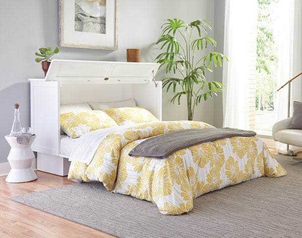 The Madrid style is a clean, white contemporary cabinet bed with a wire brush finish. Perfect for a beach condo, coastal home or sophisticated urban decor.