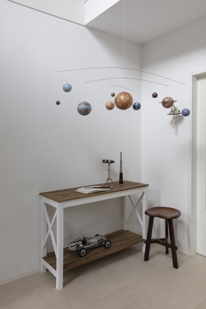 Gazing in the night sky we wonder about the size and scope of the universe. Within that magnitude our solar system seems infinite and overwhelming. It’s easier to understand native creation myths, Newtonian and Galilean theories, and great historical discoveries when viewing the solar system on a smaller, more comprehensible human scale. Reduced to both scientific and decorative models of our planetary system, revolving around the sun and not the earth as early scientists believed.