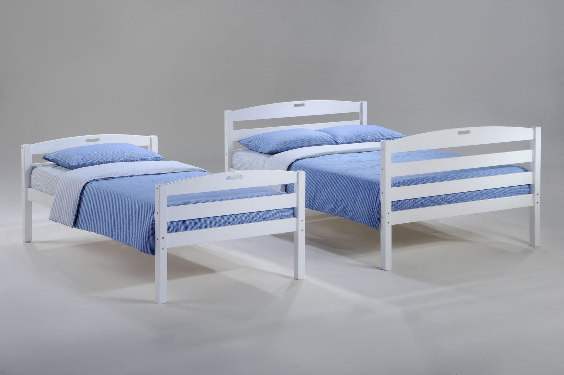 Our Sesame Bunk Bed is engineered for economy; and built for the usual abuse. Sesame’s solid hardwood frame is naturally strong and sturdy like all Night and Day Furniture products. Choose from any of our useful bunk bed accessories including rolling drawers and trundles, they’re all compatible.