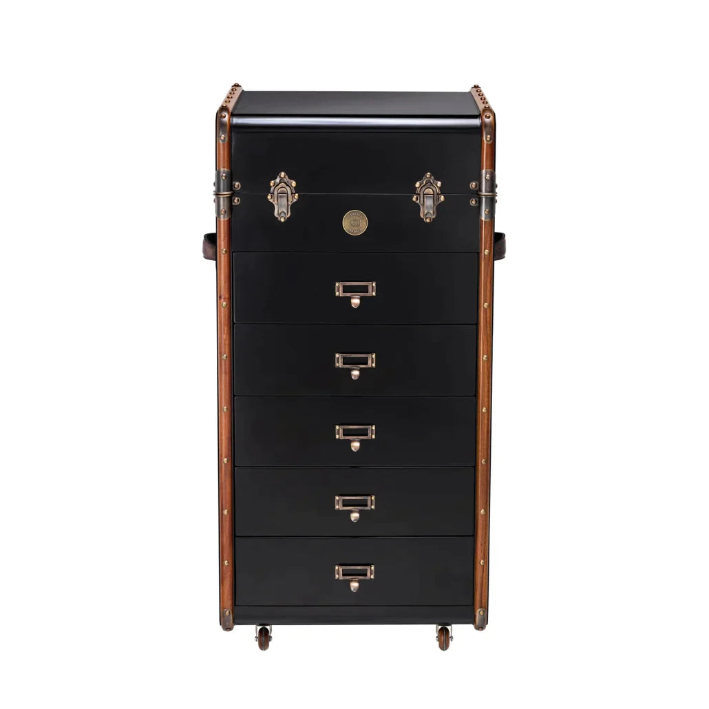 Wealthy Victorians didn’t pack light when travelling by luxury steamer! They therefore created beautiful wheeled trunks to bring clothing and other possessions on board. In a new functional twist, we’ve turned our replica trunks into chests of drawers. So you can bring a taste of the luxury steamer lifestyle into your home via a stylish storage solution.