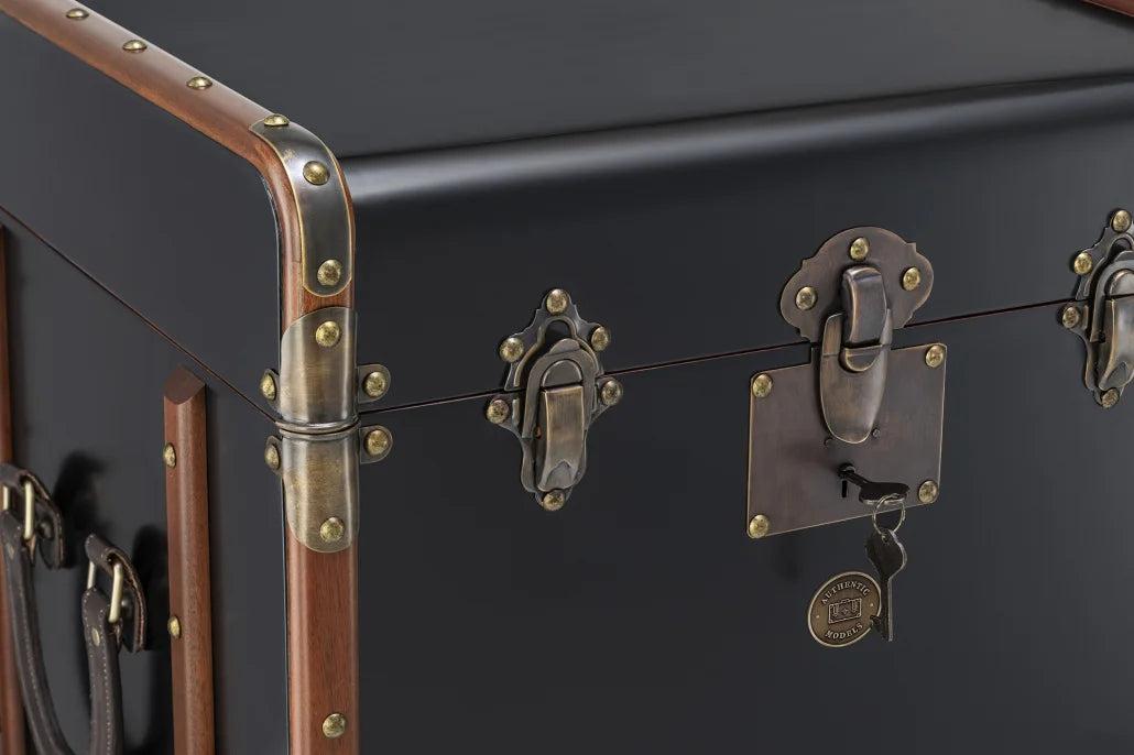Victorian luggage was made to ship by train, steamer, and horse drawn coach. Trunks were sent ahead and handled exclusively by porters. The classic maple hoops, strengthened by brass hardware and reinforced corners, protected the trunk and its contents from damage. The tall, square shape of our ‘end table’ trunk was designed to fit easily into tight cabins during extensive travel. Yet it was large enough to accommodate a tall, black stovepipe hat! Enjoy the flavor of a bygone age of luxury. Combine its fin-de-siècle appeal with the practicality of efficient storage.